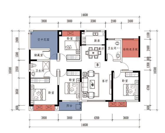 户型方正,公摊小高实用,通风采光俱佳 享“5+1”舒适生活,三代同堂共享天伦之乐 大气布局,餐厅、客厅动线一体,享宽境礼遇 独立餐厨,里应外合,远离客厅卧室,无油污无烟扰 多卧室配套,可随心打造书房、客房等多种居住空间